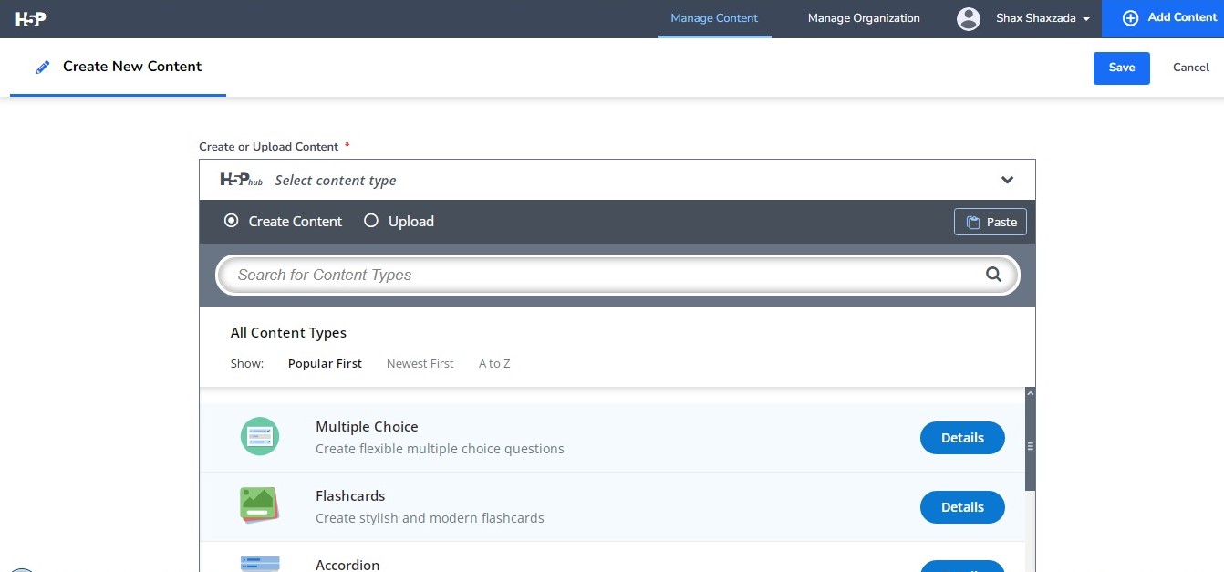 « New content» (Jańa kontent) parametrin saylań hám kontent túrleri diziminen « Flashcards» (Flesh-kartalar) dı saylań :